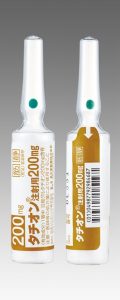 | 副作用 | 悪心・嘔吐、発疹、掻痒感、稀にショック症状(血圧低下、全身皮膚紅潮、呼吸困難等)、注射部位の疼痛、内出血、発赤、腫脹など |